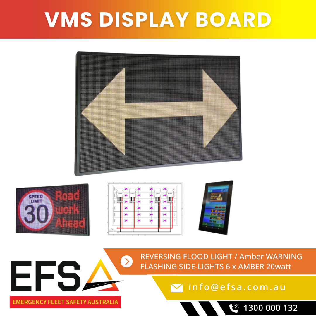 Visual Message System (VMS) Display Board provides clear and dynamic messaging for traffic management, fleet safety, and emergency communication. Designed for maximum visibility, these programmable boards display text, symbols, and warnings in bright LED lights, ensuring clear communication in all weather and lighting conditions.